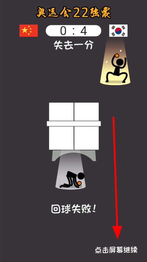 4、若回球失敗,會(huì)失去一分,此時(shí)可點(diǎn)擊屏幕繼續(xù),重新調(diào)整狀態(tài),繼續(xù)參與對(duì)戰(zhàn),爭(zhēng)取在后續(xù)回合中得分獲勝。