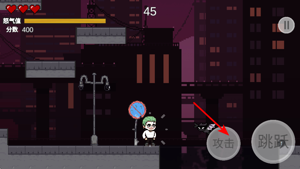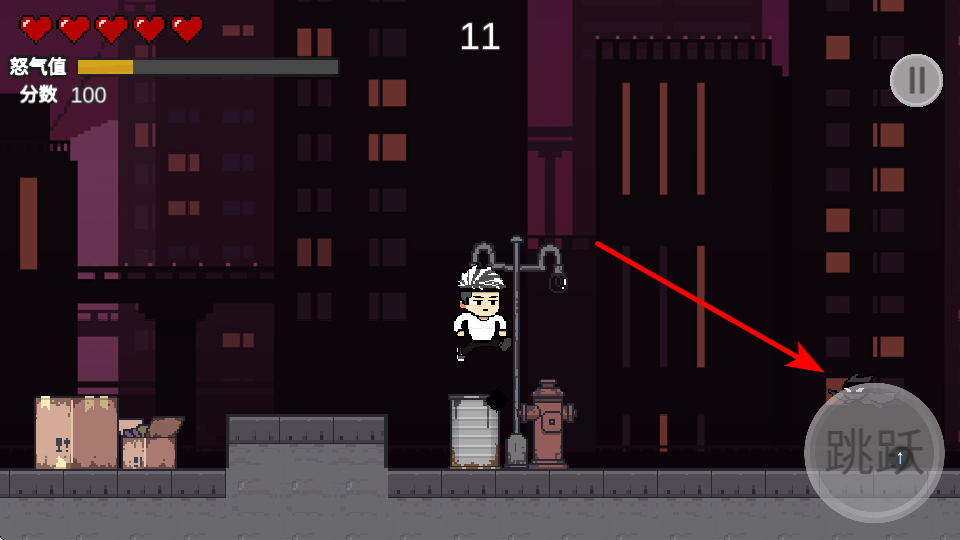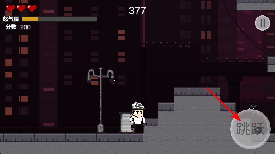 1、點(diǎn)擊跳躍按鈕,可使角色跳躍過障礙物或敵人,這是躲避危險(xiǎn)和關(guān)卡的基礎(chǔ)操作,掌握跳躍時(shí)機(jī)。