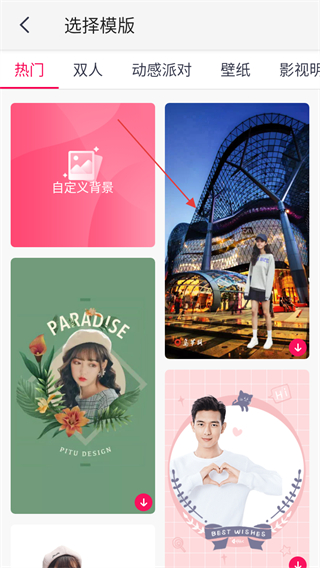 2、在選擇模板頁(yè)面,選擇喜歡的模板,進(jìn)入摳圖準(zhǔn)備頁(yè)面。