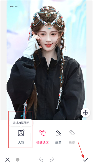 5、在摳圖編輯頁(yè)面,選擇人物摳圖方式,完成后點(diǎn)擊確認(rèn),即可完成摳圖。
