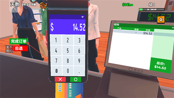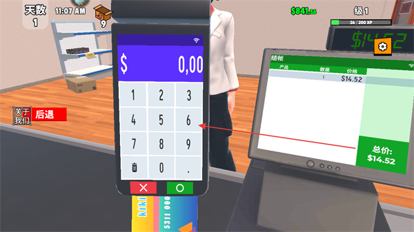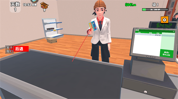 1、進(jìn)入游戲留意屏幕上方天數(shù),時(shí)間,金錢數(shù)量及等級(jí)信息點(diǎn)擊商品開始收銀。