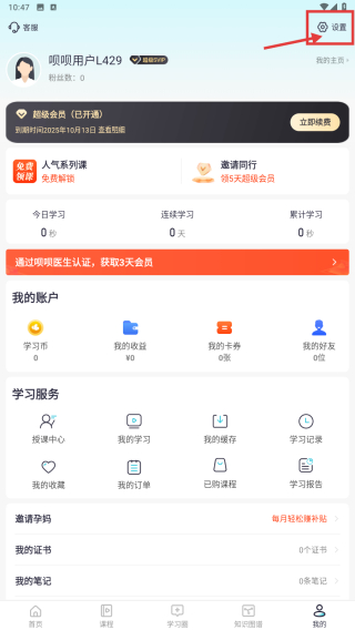 2、在個(gè)人中心,點(diǎn)擊右上角設(shè)置圖標(biāo),進(jìn)入系統(tǒng)設(shè)置頁(yè)面。