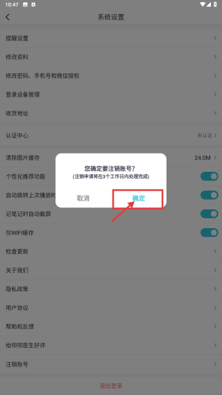 4、在提示框中,點(diǎn)擊確定按鈕,完成賬號(hào)注銷(xiāo)操作。