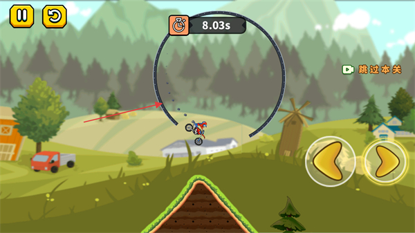 3、遇到環(huán)形等特殊地形時,利用前進(jìn)按鈕保持摩托平衡和速度,避免翻車或掉落。