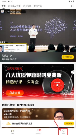 1、打開(kāi)混沌學(xué)習(xí)類應(yīng)用,點(diǎn)擊底部我的選項(xiàng),進(jìn)入個(gè)人中心頁(yè)面。