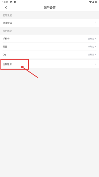 4、在賬號(hào)設(shè)置界面,點(diǎn)擊注銷賬號(hào)選項(xiàng),進(jìn)行賬號(hào)注銷操作。