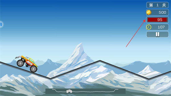 2、注意屏幕右上方的紅色能量條,行駛中避免過(guò)度顛簸損耗能量。