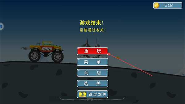 4、若挑戰(zhàn)失敗,出現(xiàn)游戲結(jié)束!沒(méi)能通過(guò)本關(guān)!提示,點(diǎn)擊重玩再次挑戰(zhàn)。