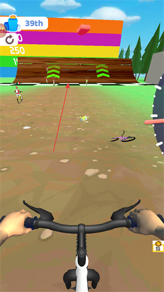 4、真實自行車操控反饋:還原自行車的基礎操控邏輯,通過按鍵實現(xiàn)加速、減速與跳躍,騎行時會根據(jù)路面坡度產(chǎn)生速度變化,如上坡減速、下坡加速,反饋真實且易于掌握。