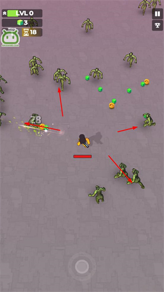 4、升級(jí)后,角色能力得到提升,繼續(xù)在場(chǎng)景中與更多喪尸戰(zhàn)斗,收集掉落的道具,同時(shí)要注意時(shí)間限制和生命值,盡可能多地?fù)魵适?,獲取更高的分?jǐn)?shù)和資源,提升游戲進(jìn)度。