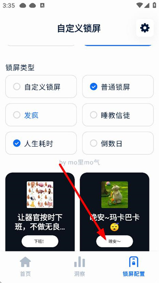 1、在洞察頁面,點擊底部的鎖屏配置,進(jìn)入自定義鎖屏頁面。