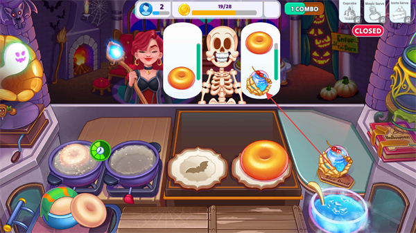 3、繼續(xù)關(guān)注新顧客需求,如出現(xiàn)2個甜甜圈的訂單,快速制作并交付,同時注意CLOSED標識避免超時。