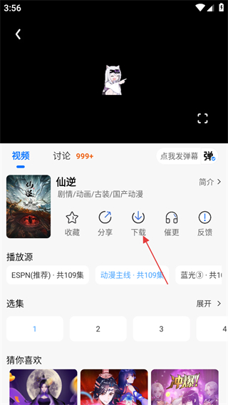 2、在仙逆播放頁面,點擊下載,進入下載選擇頁面。