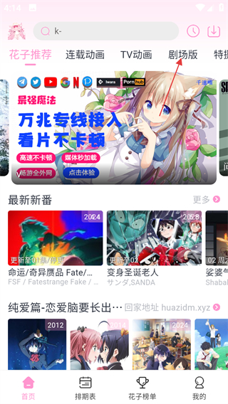 1、進(jìn)入軟件首頁(yè),點(diǎn)擊頂部劇場(chǎng)版標(biāo)簽,進(jìn)入劇場(chǎng)版分類(lèi)頁(yè)面。