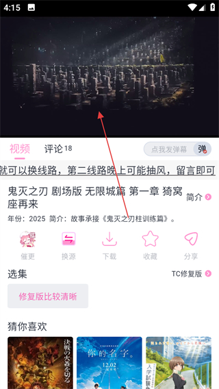 3、在劇場(chǎng)版播放頁(yè)面,點(diǎn)擊屏幕即可觀看鬼滅之刃劇場(chǎng)版電影。