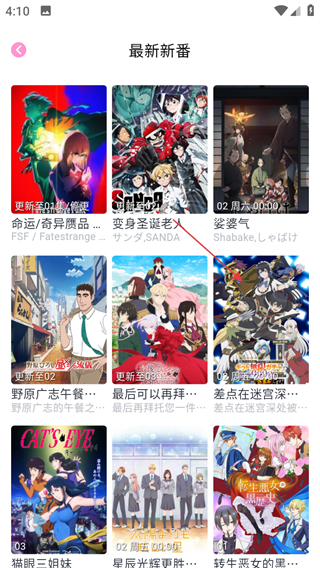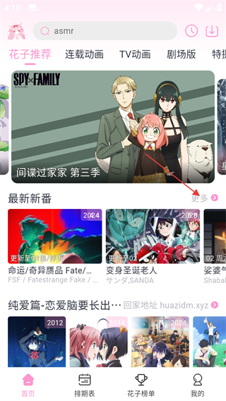 1、進入軟件首頁,點擊最新新番旁的更多,進入最新新番列表頁面。