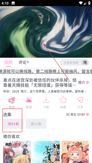 3、在新番播放頁面的選集區(qū)域選擇集數(shù)觀看,如1,點擊屏幕觀看動漫。