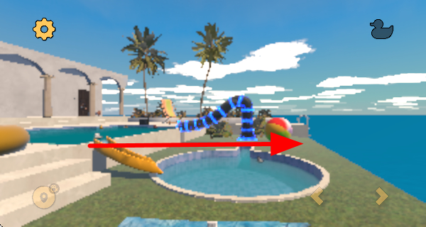 3、通過滑動操作切換鏡頭,查看不同區(qū)域的場景,尋找隱藏的小黃鴨,擴(kuò)大探索范圍。