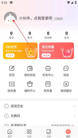 2、在個人頁面,點(diǎn)擊頭像區(qū)域,進(jìn)入登錄引導(dǎo)界面。