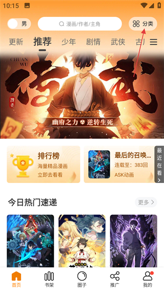 1、進(jìn)入美漫園首頁,點(diǎn)擊頂部分類,進(jìn)入分類頁面。