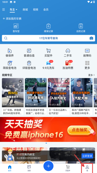 1、打開汽車服務(wù)類應(yīng)用,點(diǎn)擊底部我的選項(xiàng),進(jìn)入個(gè)人中心頁面。