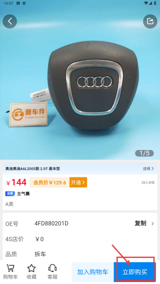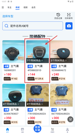 2、在商城熱銷配件區(qū),找到奧迪主氣囊商品,點(diǎn)擊進(jìn)入詳情頁。
