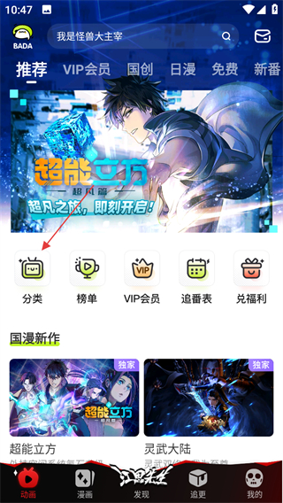 1、進入軟件動畫頁面,點擊分類,進入分類篩選頁面。