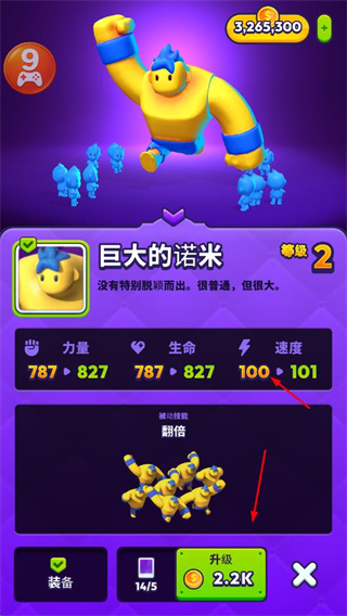 1、可對巨大的諾米進行升級,消耗金幣提升其力量、生命、速度等屬性,還能觸發(fā)翻倍效果,增強戰(zhàn)力。