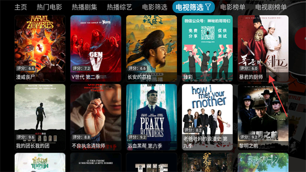 2、在電視篩選頁面,找到暴君的廚師,點(diǎn)擊進(jìn)入其搜索結(jié)果頁面。
