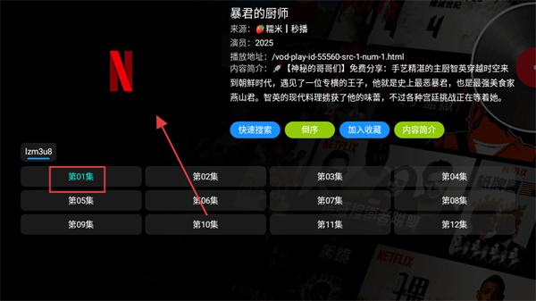 3、在暴君的廚師搜索結(jié)果頁面,點(diǎn)擊對應(yīng)劇集封面,進(jìn)入劇集播放選擇頁面。