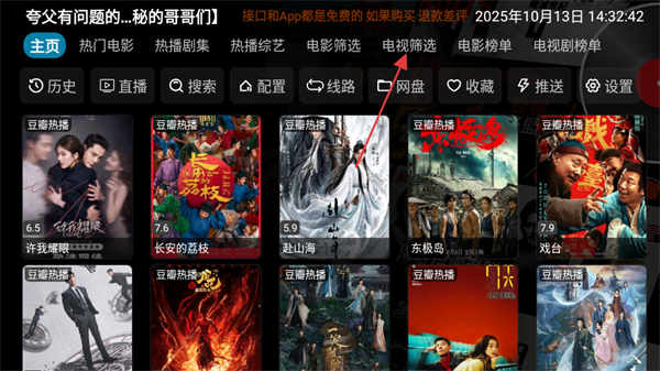 全程無任何付費(fèi)環(huán)節(jié),無需開通會員或充值,所有影視資源在添加接口后均可免費(fèi)觀看,徹底降低觀影成本,讓用戶無壓力享受大屏影視內(nèi)容,適配家庭免費(fèi)觀影需求。
