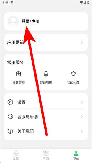 2、在我的頁面,點(diǎn)擊登錄注冊(cè)。