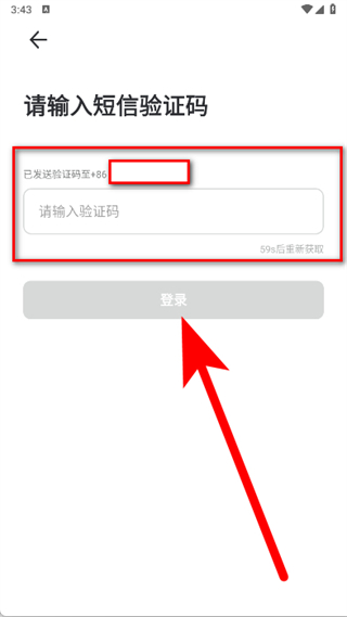 4、在短信驗(yàn)證碼輸入頁面,輸入驗(yàn)證碼后點(diǎn)擊登錄,完成注冊(cè)。