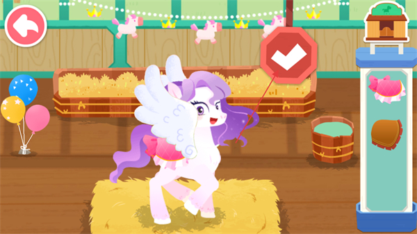 包含喂食等基礎(chǔ)飼養(yǎng)環(huán)節(jié),模擬真實(shí)照料場(chǎng)景,用戶需主動(dòng)操作滿足小馬需求,培養(yǎng)責(zé)任感與細(xì)致的照料習(xí)慣。