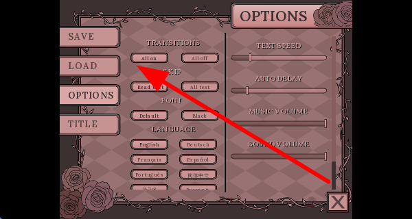 3、進(jìn)入菜單設(shè)置,能調(diào)整過(guò)渡效果、文字速度等選項(xiàng),根據(jù)喜好優(yōu)化游戲的視覺(jué)和操作體驗(yàn)。