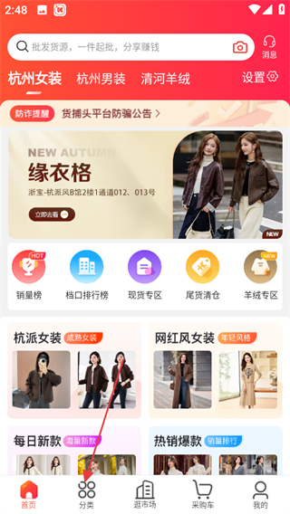 1、進入貨捕頭女裝網(wǎng)首頁,點擊底部分類,進入分類頁面。