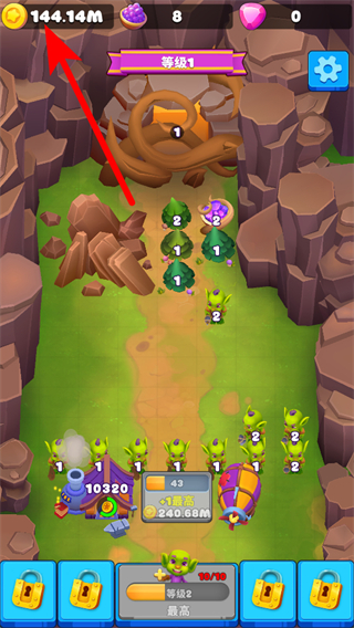 3、關(guān)注左上角的金幣總量,它能反映挖掘成果,通過合理分配哥布林,持續(xù)挖掘以增加金幣數(shù)量,積累更多資源。