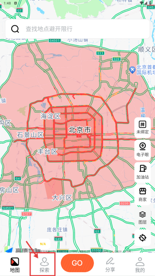 1、打開地圖導航類應用,點擊底部探索選項,進入探索板塊。