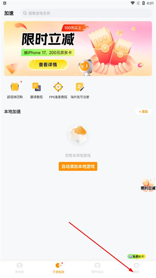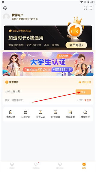 1、在雷神加速器APP頁面,點(diǎn)擊右下角我的,進(jìn)入個(gè)人頁面。