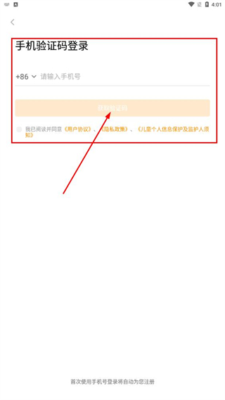 3、在手機(jī)驗(yàn)證碼登錄頁面,輸入手機(jī)號(hào),點(diǎn)擊獲取驗(yàn)證碼,獲取驗(yàn)證碼。