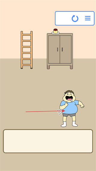 1、進(jìn)入游戲關(guān)卡,觀察場景中梯子、柜子及柜子上的點心位置,思考如何幫助人物拿到點心。