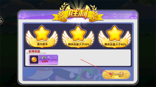 4、成功消滅所有敵人后達(dá)成勝利界面條件領(lǐng)取金幣獎(jiǎng)勵(lì)點(diǎn)擊下一步繼續(xù)。