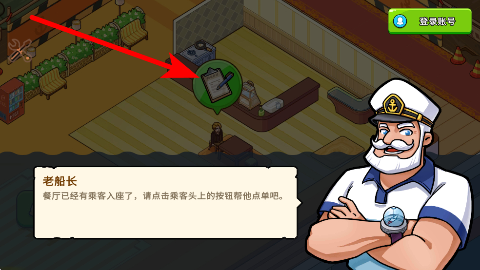 2、設(shè)施建造好后,點(diǎn)擊左下角任務(wù)提示圖標(biāo),會(huì)有老船長(zhǎng)等指引,按照提示,比如餐廳有乘客入座后,點(diǎn)擊乘客頭上的點(diǎn)單按鈕,幫乘客點(diǎn)單,完成后能獲得金幣等獎(jiǎng)勵(lì)。