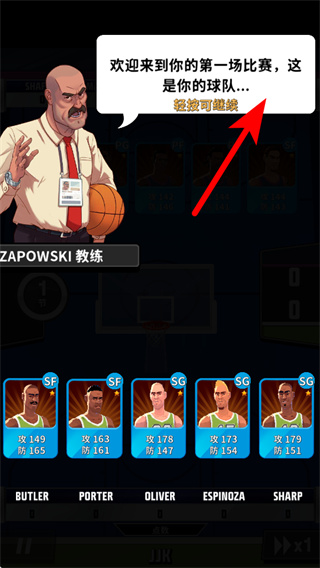 2、教練會介紹你的球隊,輕按可繼續(xù),通過此操作能了解球隊球員信息,為后續(xù)做準備。