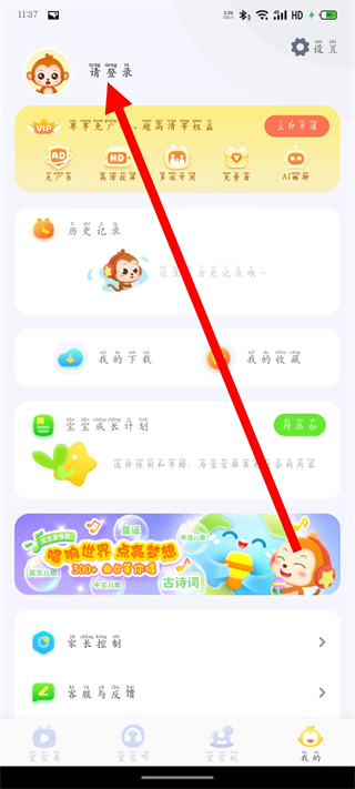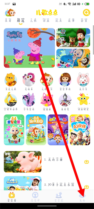 1、打開兒歌點(diǎn)點(diǎn),點(diǎn)擊頁面底部的我的,進(jìn)入個(gè)人頁面。