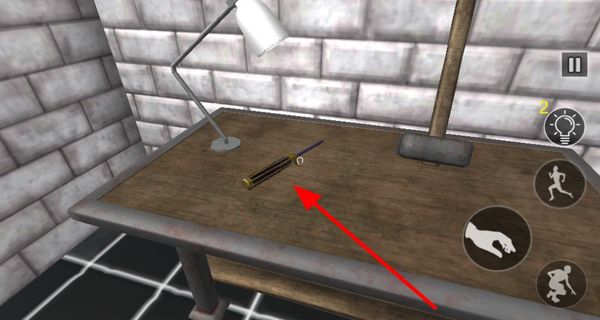 3、點(diǎn)擊屏幕右側(cè)的手掌,就能讓角色伸手拾取桌子上的螺絲刀,這把螺絲刀可能是后續(xù)解開(kāi)某些機(jī)關(guān)、打開(kāi)特定門的物品。