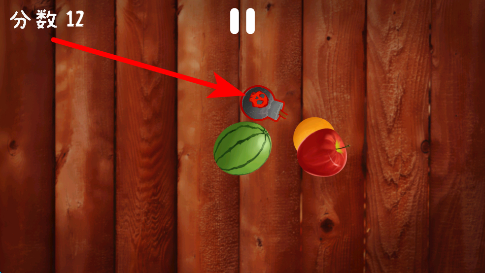 2、游戲中會(huì)出現(xiàn)炸彈,若不小心切割炸彈則游戲結(jié)束,需時(shí)刻留意屏幕中物品,區(qū)分水果與炸彈,避免誤切炸彈導(dǎo)致游戲失敗。