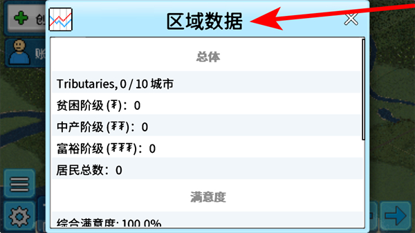 4、城市建成后,可查看區(qū)域數(shù)據(jù)界面,了解貧困階級、中產(chǎn)階級、富裕階級及居民總數(shù)等信息,助力城市管理。