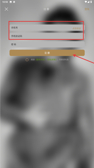 4、在注冊頁面,填寫手機號、手機驗證碼并設(shè)置密碼,點擊注冊按鈕,完成賬號注冊操作。