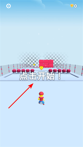 1、進(jìn)入游戲啟動(dòng)界面后,看到點(diǎn)擊開始提示時(shí),直接點(diǎn)擊屏幕啟動(dòng)游戲,這是開啟跑酷挑戰(zhàn)的關(guān)鍵操作,點(diǎn)擊即可讓角色從起點(diǎn)出發(fā)。